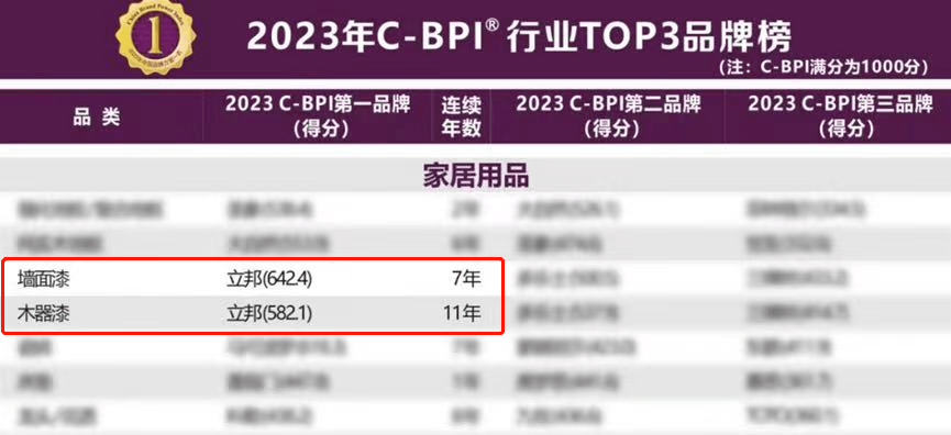立邦墻面漆與木器漆斬獲2023年中國(guó)品牌力指數(shù)(C-BPI?)行業(yè)第一