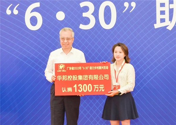 在捐贈環節,華邦控股集團積極響應廣東省委、省政府號召,以責任詮釋擔當,華邦慈善基金會理事長蘇逸代表華邦舉牌捐贈1300萬元,以實際行動為廣東全面推進鄉村振興貢獻綿薄之力。作為廣東省百強民營企業,華邦積極投身鄉村振興事業,特別是近五年來持續加大幫扶力度,2019-2023年向廣東“6·30”活動累計捐贈6600萬元,彰顯了華邦和創始人蘇如春以善心善念支持慈善公益的價值理念。