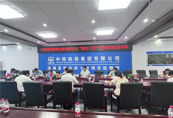 為進一步增強項目全員廉潔自律意識,積極響應津濰高鐵“廉潔工程”建設工作全面開展,7月24日,中鐵四局一公司津濰高鐵站前七標項目黨總支組織項目經理部全體員工開展“廉潔工程”建設應知應會知識測試活動,以考促學,以學促干,提升項目全體員工“廉潔工程”建設工作的主動性、積極性。
