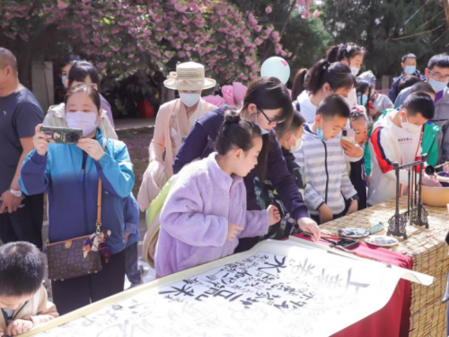 來賓們?cè)谫p櫻的同時(shí)紛紛錄制有聲明信片“我想對(duì)黨說”,體驗(yàn)各式手作、風(fēng)箏制作、DIY團(tuán)扇制作、漢服秀等。“越羅衫袂迎春風(fēng),玉刻麒麟腰帶紅。”春色花下,飄逸的裙裾、精致的簪花,中華傳統(tǒng)服飾之美與絢爛多姿的國潮風(fēng)交相輝映,在水墨香中感受漢字書法的魅力所在,在詩詞之美中,領(lǐng)略詩意人生的寫照、家國情懷的寄托,傳承詩詞文化,涵養(yǎng)民族精神。
