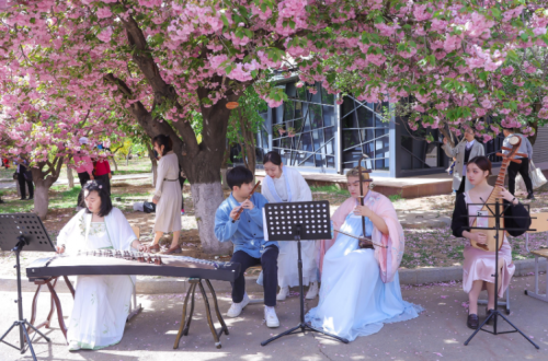 賞櫻線路上,櫻花大道內(nèi)一群青年大學(xué)生身懷技藝,各式才藝展演,民樂、古箏獨(dú)奏、管弦、鋼琴獨(dú)奏、快閃《愛出發(fā)》《花海》《青春練習(xí)冊(cè)》《不得不愛》《后會(huì)無期》街舞、中國舞、樂隊(duì)青春活力,青年大學(xué)生校園科技文化展示區(qū)機(jī)器人展示、大賽作品及藏品展、模型沙盤互動(dòng)、環(huán)保、創(chuàng)城互動(dòng)區(qū)地球日主題、綠色農(nóng)業(yè)創(chuàng)城理念、經(jīng)濟(jì)普法知識(shí)互動(dòng),展示了當(dāng)代大學(xué)生的蓬勃的創(chuàng)新精神和社會(huì)責(zé)任感。