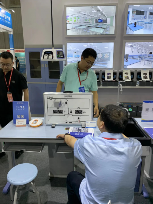 北京東方中科達(dá)科技有限公司受邀參展,不僅帶來了智能理化生塔吊系統(tǒng)、智能升降電源、午休課桌椅等產(chǎn)品,還同江蘇蘇威爾科技有限公司強(qiáng)強(qiáng)聯(lián)手,共同推出初高中理化生智慧創(chuàng)新實(shí)驗(yàn)室和小學(xué)科學(xué)數(shù)字化探究實(shí)驗(yàn)室,吸引了在場(chǎng)的領(lǐng)導(dǎo)嘉賓、業(yè)內(nèi)同仁以及學(xué)校老師的駐足參觀,獲得了廣泛的認(rèn)可與稱贊。下面給大家?guī)硪恍┈F(xiàn)場(chǎng)的精彩瞬間。