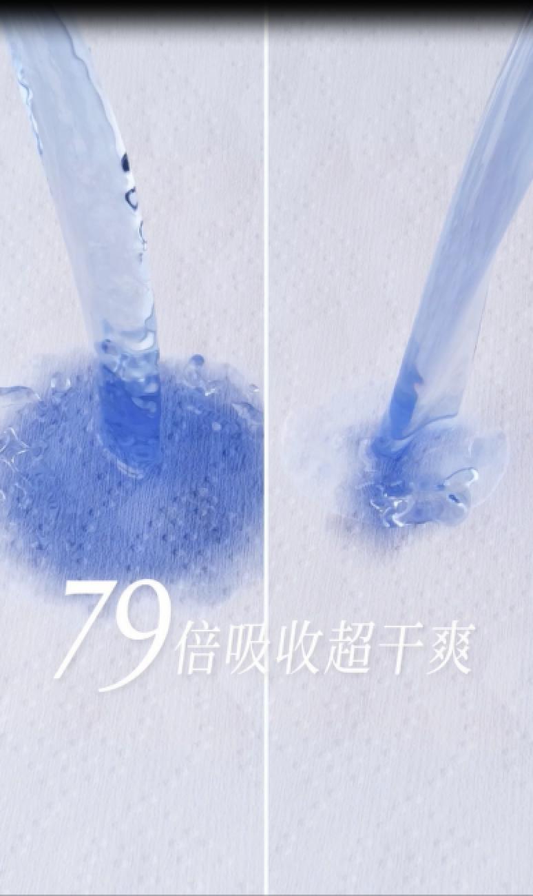 因此,從女性體感出發(fā),棉密碼無痕系列的面層、芯體全面創(chuàng)新。其中一大亮點(diǎn)在經(jīng)血隱形科技上,在面層與芯體材質(zhì)的共同作用下,能夠在經(jīng)血接觸后快速下滲,并在底部擴(kuò)散,視覺看起來表面只有一點(diǎn)點(diǎn),減少表層接觸肌膚的粘膩度,從而真正實(shí)現(xiàn)“視覺無感”。