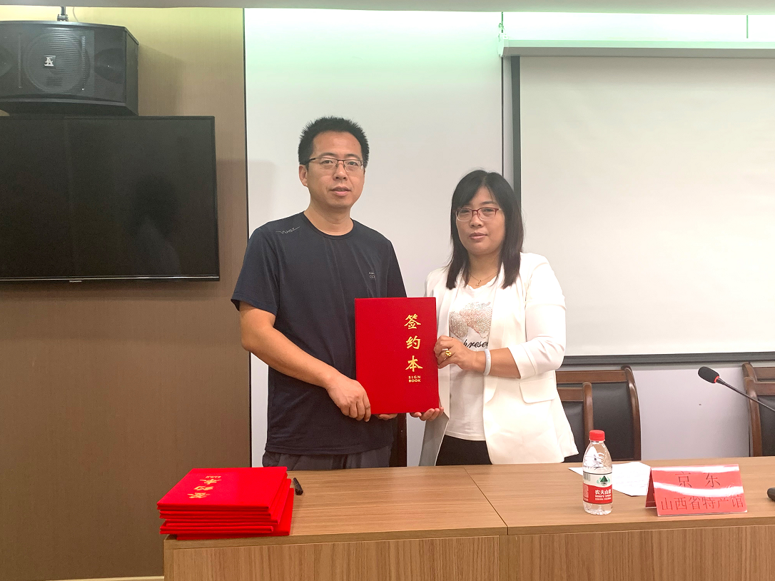 此次產銷對接會上,浮山縣康杰副食品有限公司郭杰、山西堯田農業科技股份有限公司張振東以及浮山縣神山土特產品加工有限公司李準作為農產品企業代表上臺做重點推介。對接會現場專門設置了浮山農產品展示區,便于能近距離感受和體驗浮山的特色農產品,現場洽談對接氛圍熱烈,隨后京東特產館負責人代表京東平臺與到場的13家企業簽訂產銷合同,達成戰略合作協議。