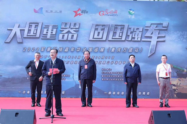 萬盛經開區黨工委副書記、管委會主任胡珍強誠摯邀請四海賓客到訪萬盛,并表示巡展充分激發了群眾愛祖國、愛家鄉的熱情,零距離接觸到各型軍事裝備,聆聽軍事專家的現場講座,更能品嘗到獨具特色的各類萬盛風味美食。重慶市委宣傳部二級巡視員蔣大權表示本次巡展立足于新時代、新征程、新重慶的大背景,營造了“國防為全民”的良好社會氛圍,是重慶市委全民國防教育工作領導小組會議精神的積極落實,有效健全了全民國防教育工作機制。
