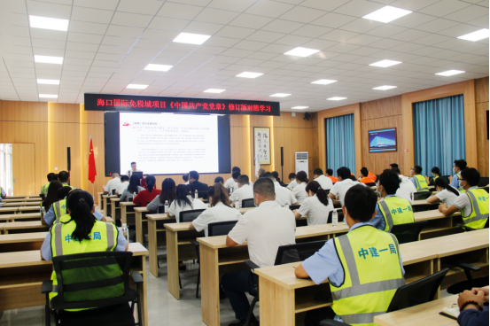 為深入學習貫徹黨的二十大精神,推動二十大精神迅速走深走實,11月11日,中建一局北京公司海口國際免稅城項目黨支部聯合中免(海口)投資發展有限公司黨支部共同開展黨建聯創活動暨“共學黨章修正案,做新時代合格共產黨員”主題黨課,通過學原文、悟原理,深刻領會黨章修正案的內容和意義,做到真學真懂、篤信篤用。雙方黨員、積極分子、青年骨干及農民工代表60余人參加了此次活動。