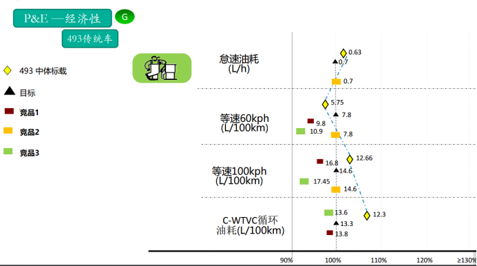 當車輛怠速時,發動機的轉速僅600轉,在省油的同時,又進一步降低了發動機噪音,百公里油耗較同類機型油耗低5%以上。它的額定功率點燃油消耗率為215 g/(kW·h),在WTVC綜合油耗及等速油耗均優于競品。