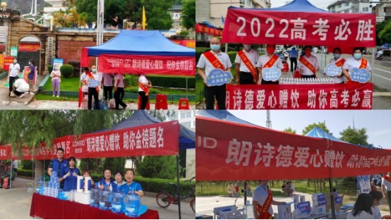 據了解,朗詩德積極承擔社會責任,踐行企業擔當,連續四年在考點附近設立“高考加油站”,為考生和家長供應“朗詩德愛心贈飲”。