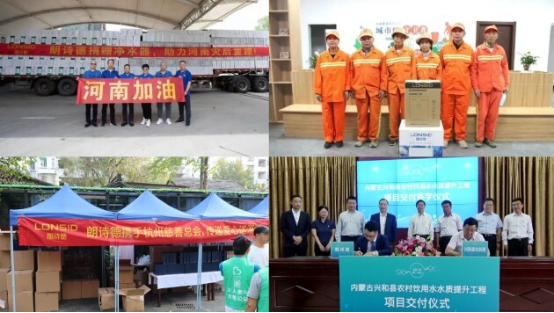 除了高考助力以外,朗詩德凈水器也曾積極參與過許多其他公益活動。2019年,朗詩德凈水器積極助力內蒙凈水扶貧,憑借對復雜水質的多年研究,為三千多戶水質不達標的農村人家,安裝上朗詩德L2凈水器,惠及農戶上萬人;2020年,朗詩德為湖南省城步縣捐贈防疫物質;2021年7月,朗詩德公司在河南省發生特大暴雨后,幫助河南災后重建,捐贈價值上千萬的朗詩德凈水器,助力河南災后重建;同年9月,朗詩德凈水器通過莆田慈善總會、杭州慈善總會捐贈千盒愛心月餅,向醫護人員和一線勞動者送上這份獨屬于中秋的溫暖;2022年,朗詩德給北白象鎮勞動者環衛驛站的工人們送去了一臺L3純水機以及GA406K-2管線機,有效解決了環衛工人“喝水難”的問題,讓環衛工人感受到社會的關愛和城市的溫暖。