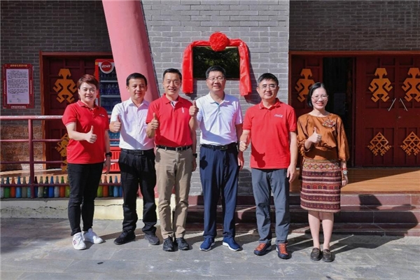 毛道鄉“消碳莊園”揭牌,從左到右分別為:海南太古可口可樂總經理宋麗華、五指山市人民政府黨組成員、副市長高亮、太古可口可樂中國區首席執行官黨建、中國綠化基金會副主席兼秘書長陳蓬、可口可樂大中華及蒙古區副總裁張建弢、毛道鄉黨委書記黃凌鳳
