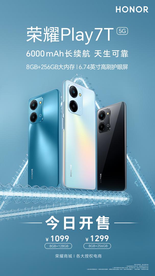 榮耀Play7T系列5G新品開售 帶來6000mAh超長續航“天生可靠”新選擇