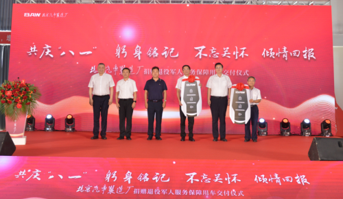 7月28日,北京汽車制造廠在青島總部基地隆重舉行“共慶‘八一’,躬身銘記,不忘關懷,傾情回報”捐贈退伍軍人服務保障用車交付儀式,以實際行動做出擁軍表率,為建軍96周年獻禮。原空軍指揮學院副院長朱和平少將、中國退役軍人就業創業服務促進會理事長王義少將、中國退役軍人就業創業服務促進會常務副理事長林崗少將、中國汽車工業協會常務副會長兼秘書長付炳鋒、山東省退役軍人事務廳副廳長劉興磊以及各界領導嘉賓共計200余人出席了本次儀式,北京汽車制造廠董事長陸付軍在現場遞交了此次捐贈的BAW卡路里皮卡新車鑰匙。